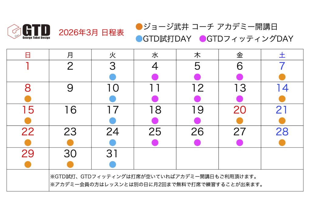 アカデミーでは単なる1ポイントではなく、皆様が小学校から中学校高校大学に行くのと同様にどんなゴルファーになるのか等、各々のプレーヤーの目標を決め反復練習をして頂き毎年クレードアップして頂く学校だと思っていただければ幸いです。ゴルフを一回のレッスンで全てを知るとは思わないでください。全ては積み重ね。